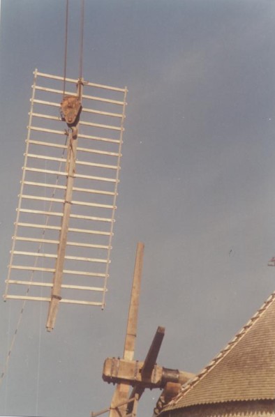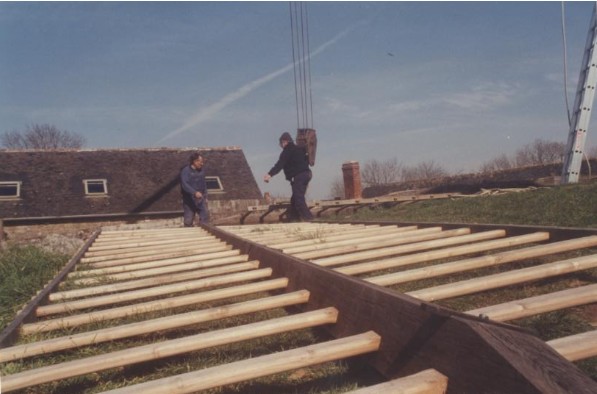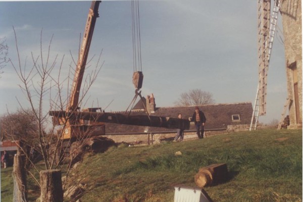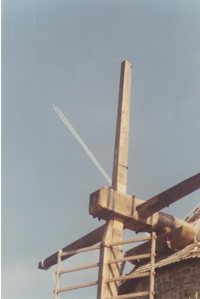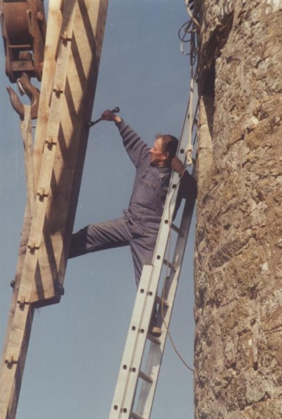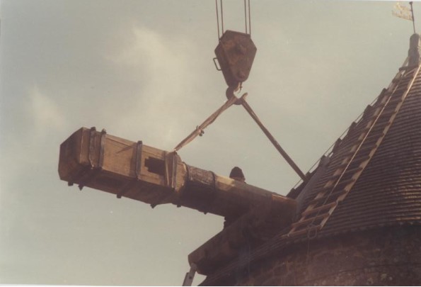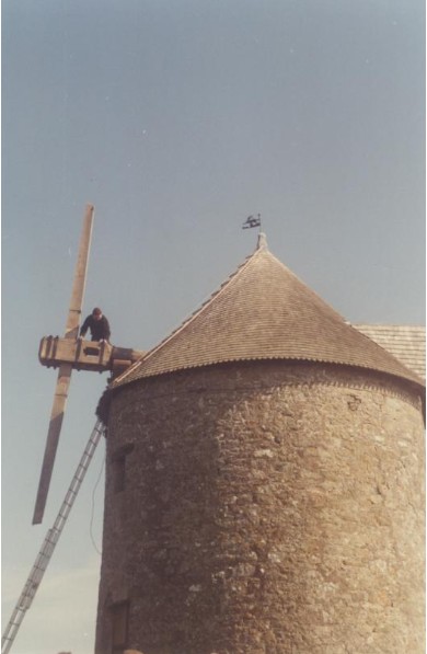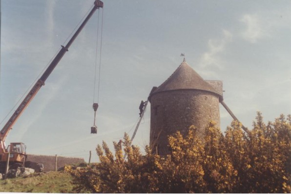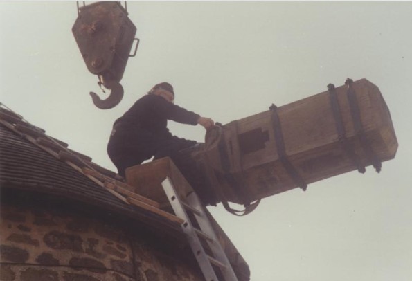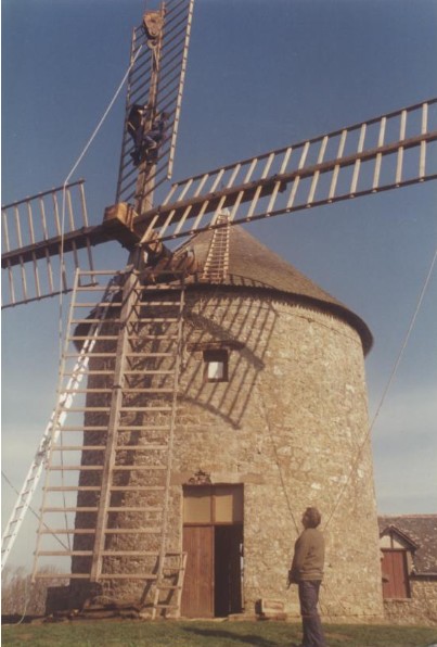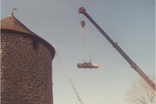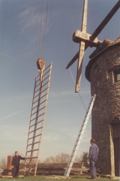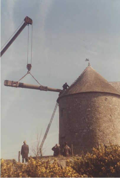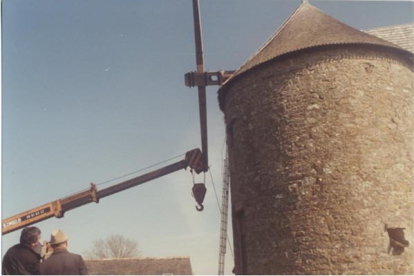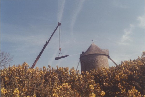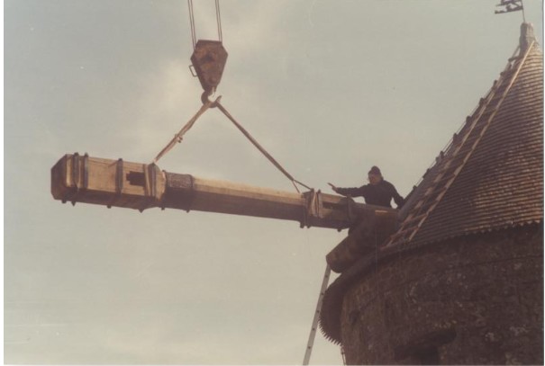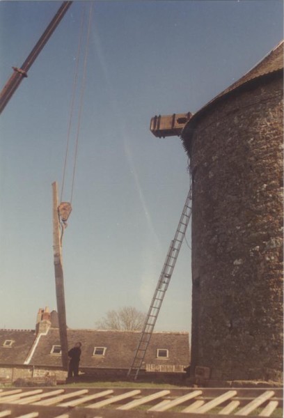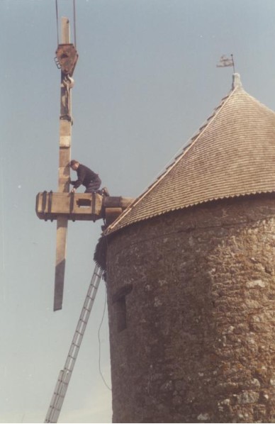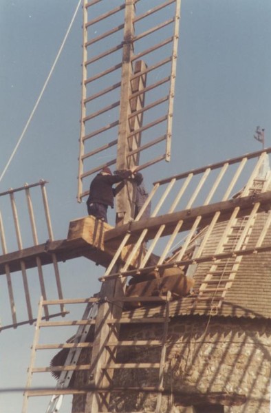 Photo de rénovation des ailes du moulin le 22 mars 1995 Partager : Cliquez pour partager sur Facebook(ouvre dans une nouvelle fenêtre) Facebook Cliquer pour partager sur X(ouvre dans une nouvelle fenêtre) X